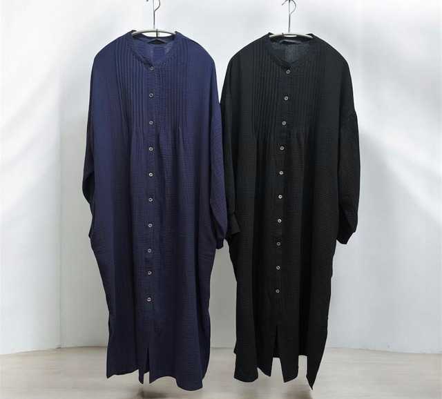 ダブルガーゼ 製品洗いピンタックシャツワンピース