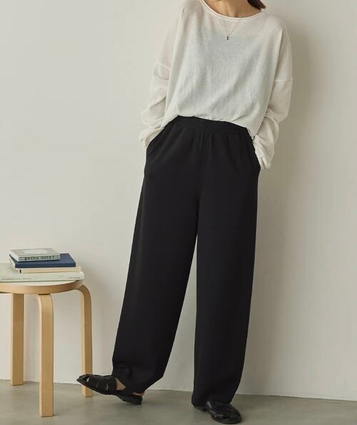 ウエストは総ゴム仕様でストレスフリー、デイリーに使いやすい快適な穿き心地。