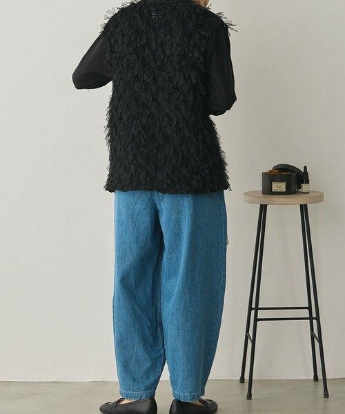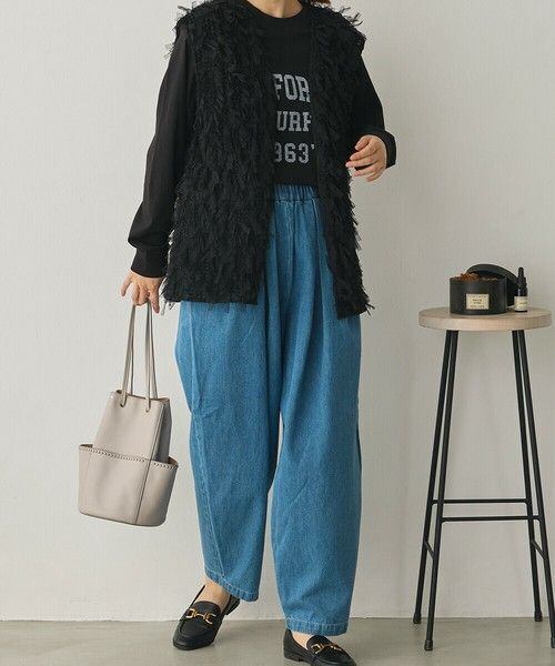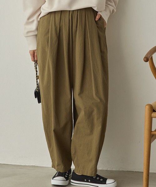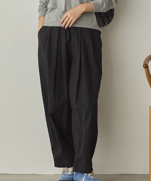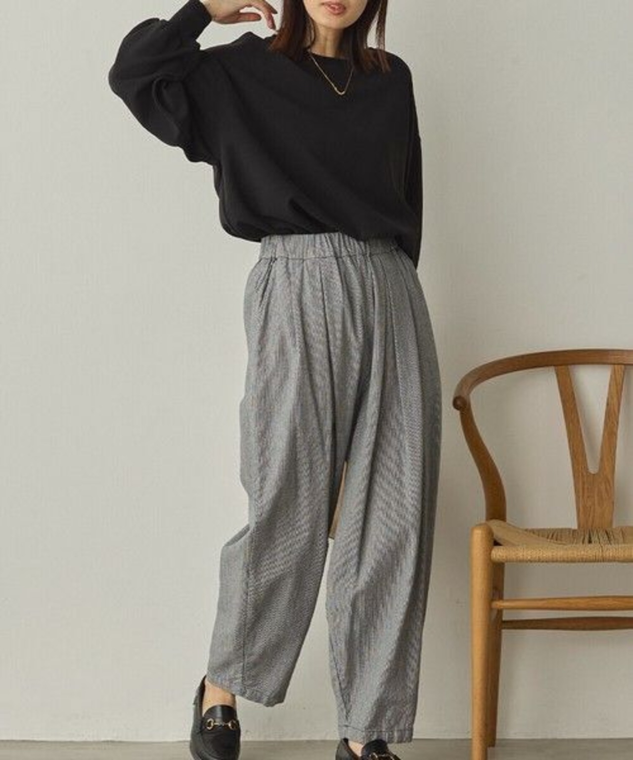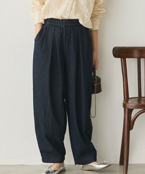 ダンプ&デニム生地を使用したタックイージーパンツ。