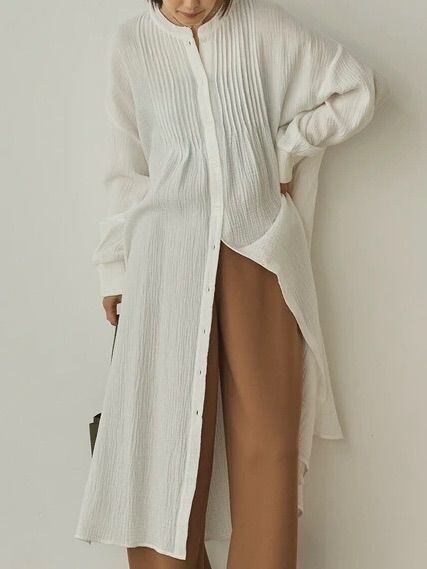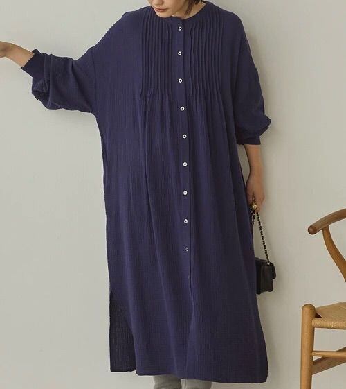 フロントは裾までボタン仕様になっているため、ワンピースとしてはもちろん、