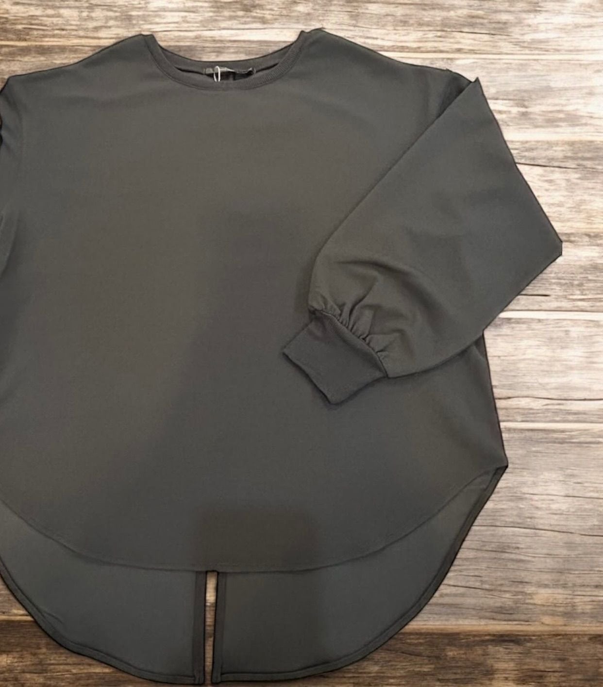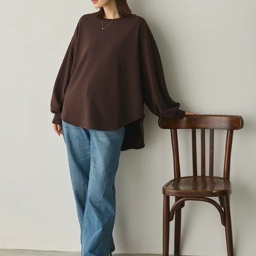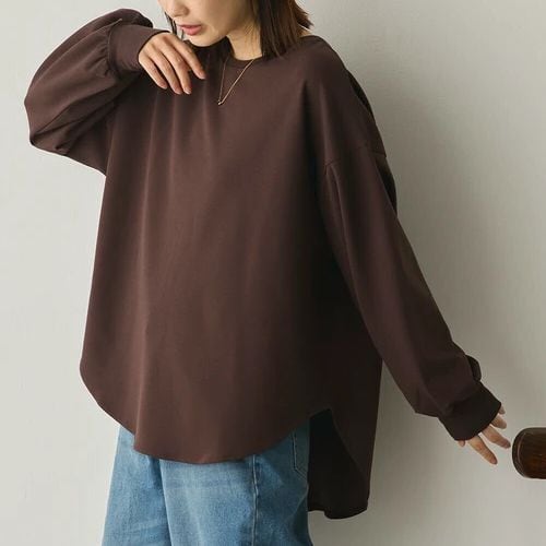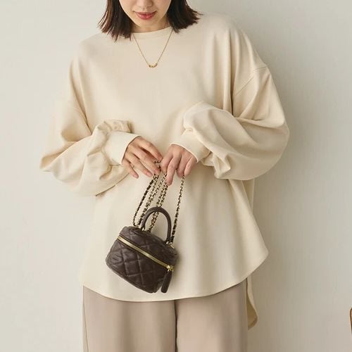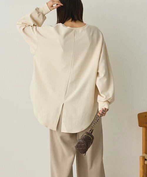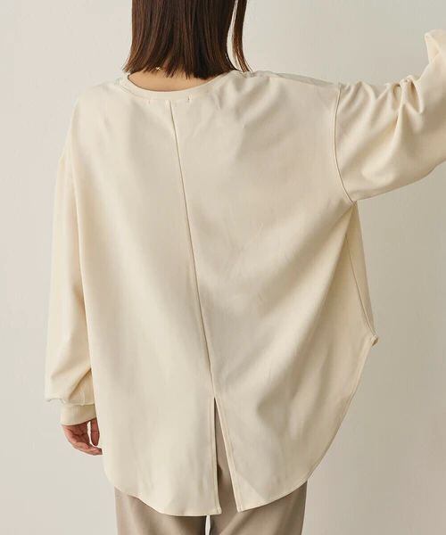後ろはスリット入りのラウンドヘムデザインで、動くたびに軽やかな揺れ感をプラス。