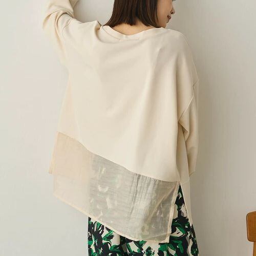 後ろ裾をオーガンジーで切り替え、程よい透け感をプラスすることで、