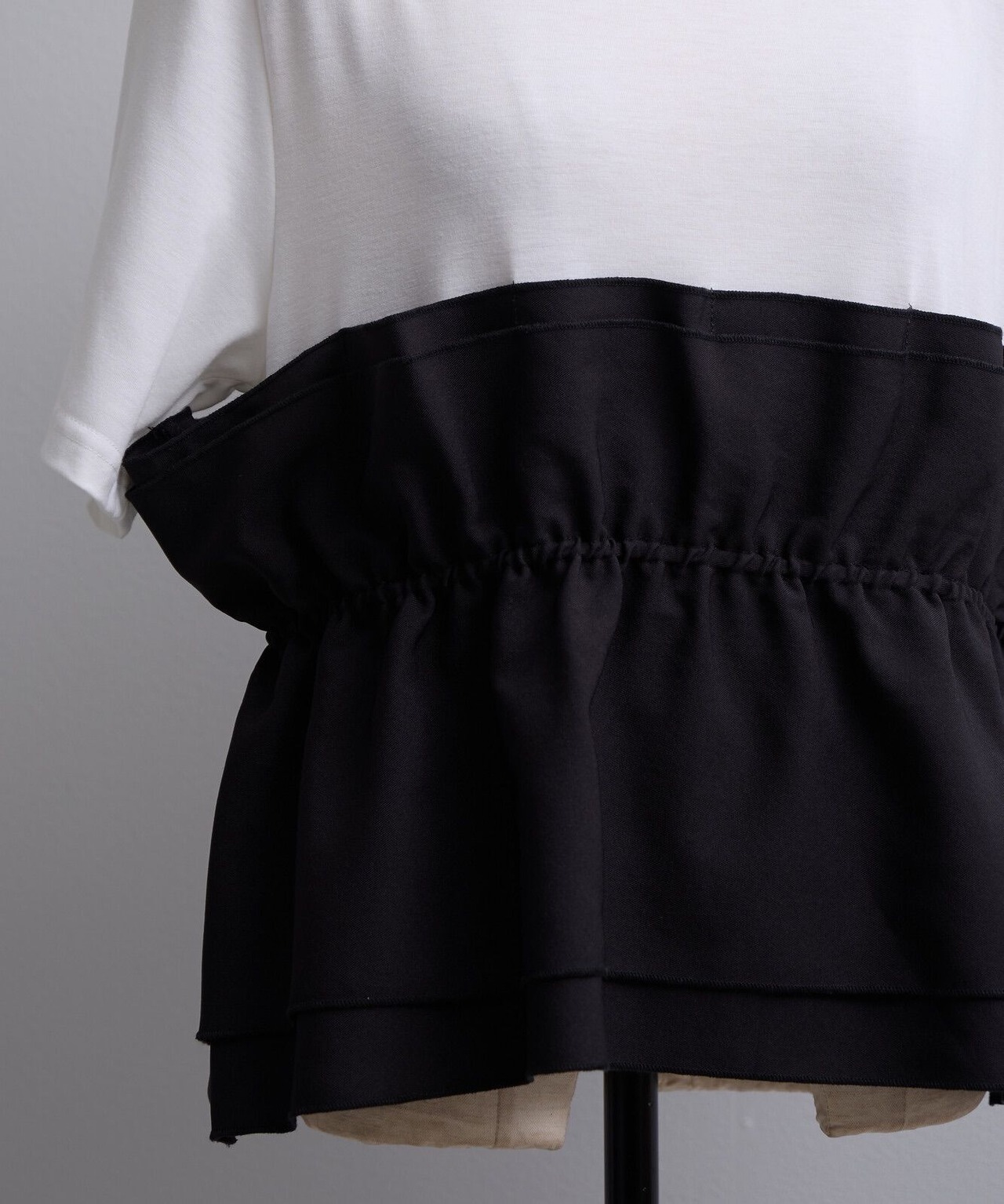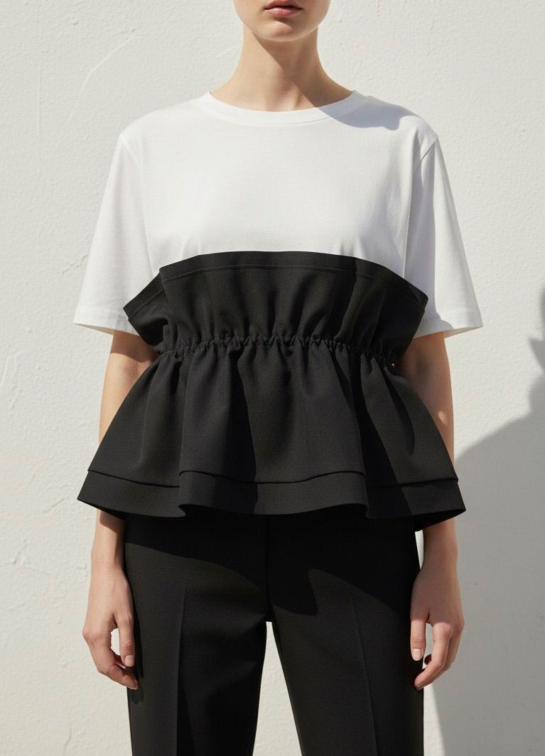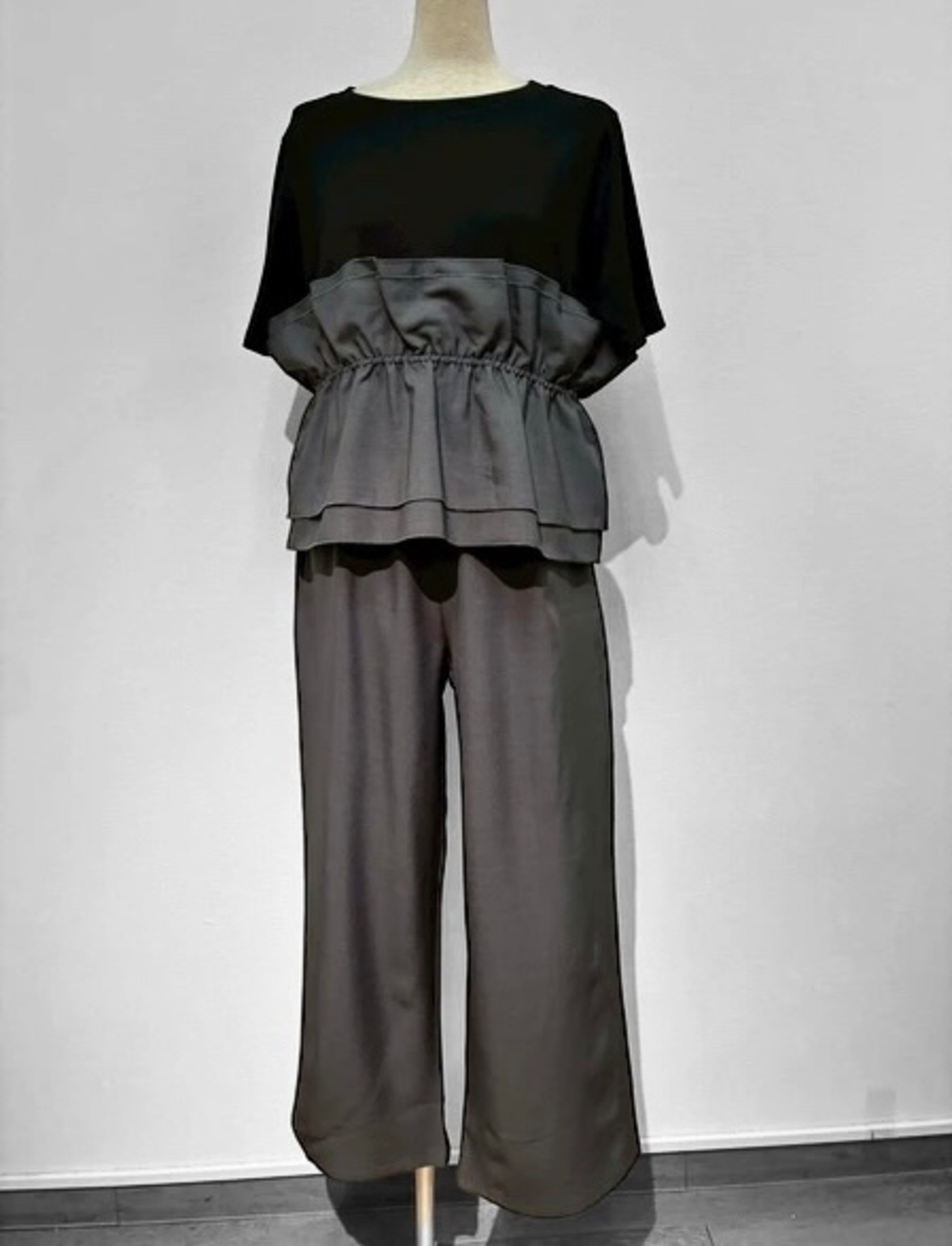 【SET】ビスチェ風フリルドッキング半袖カットソー+リラックスワイドイージーパンツ(2set)