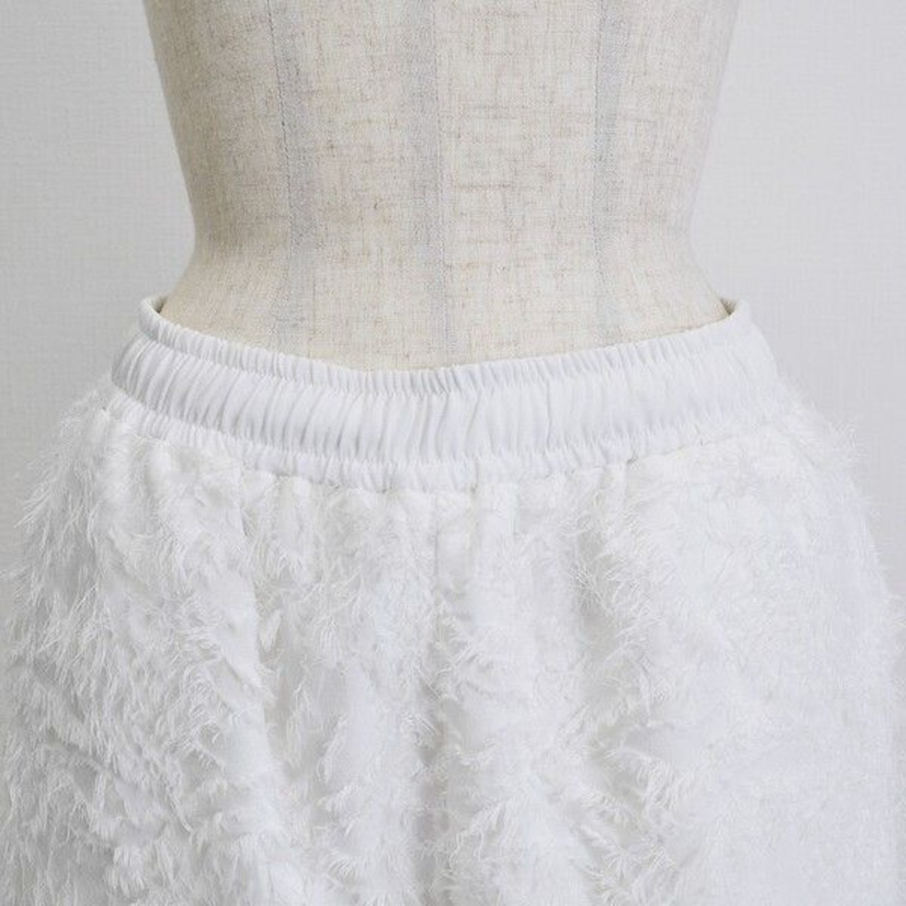 織り込まれたフリンジ加工によって立体感のあるおしゃれな仕上がりになっています。