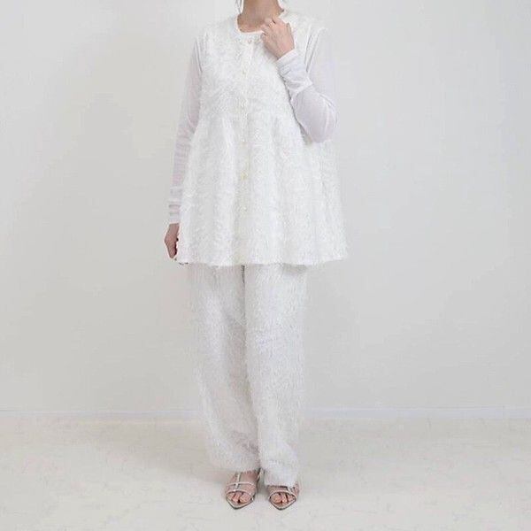 同じデザインのベストと組み合わせることで、統一感のあるセットアップスタイルが楽しめます。