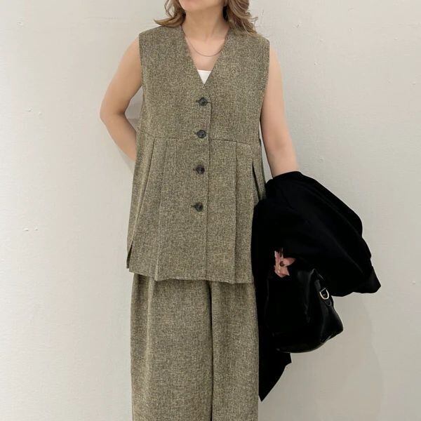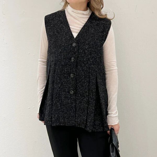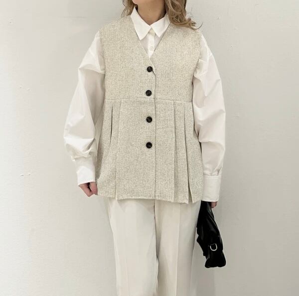 上品なサマーツイード素材にボックスプリーツを施した、フォルムが美しいベスト。