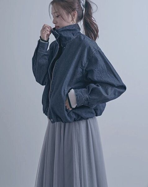 スタンドカラーデニムブルゾンジャケット
