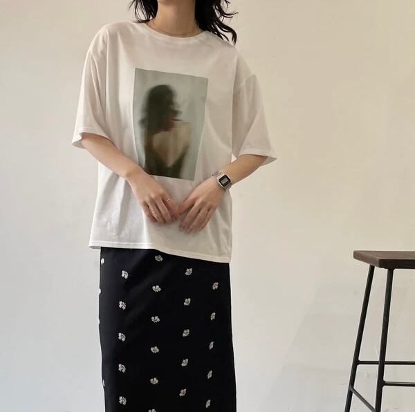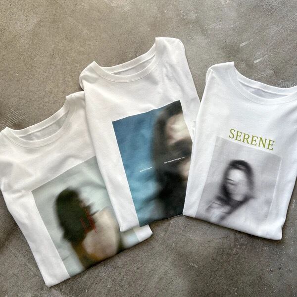 ぼかしを効かせたアートフォトプリントが印象的なTシャツ
