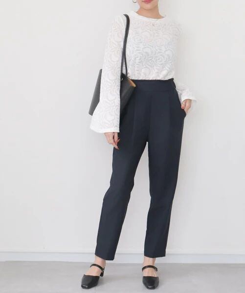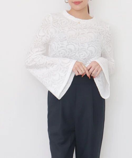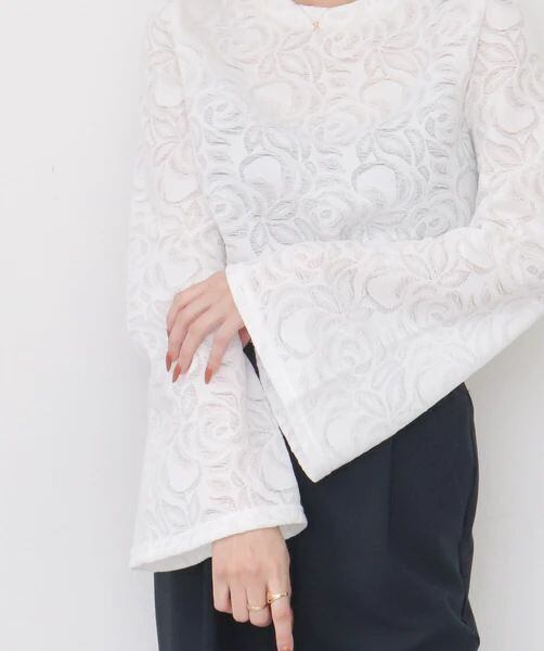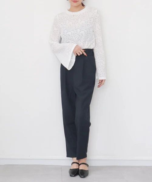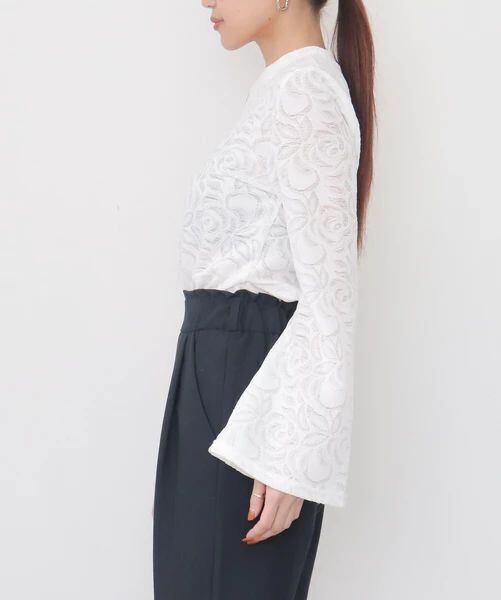 半透けのジャガード柄がフェミニンなプチハイネックカットソー